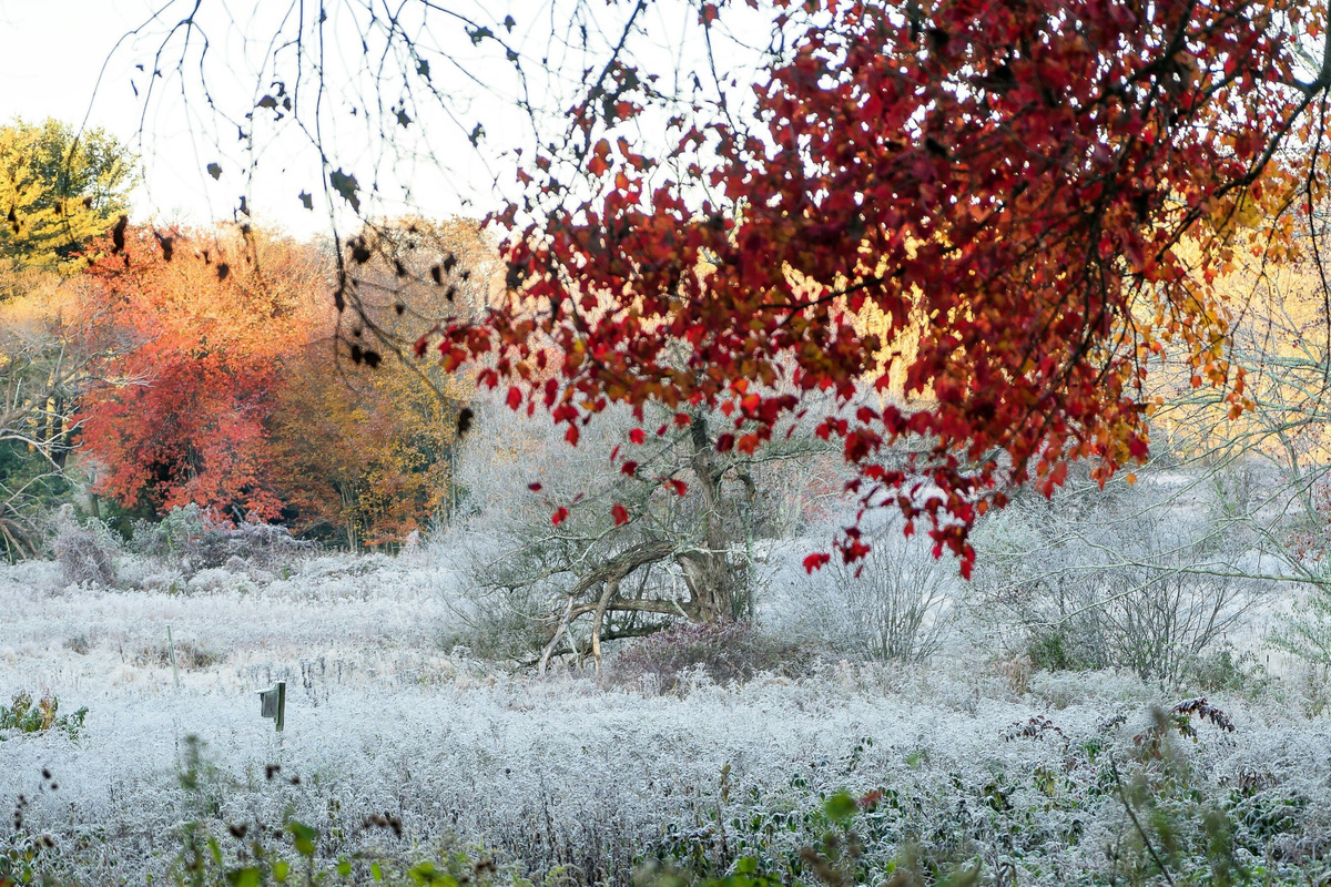Осенью краски становятся мягче, и это естественный союзник визуальной тишины. В ноябрьском саду господствуют оттенки земли, коры, сухих трав и неба — серо-зелёные, охристые, терракотовые, пепельно-коричневые. Эти тона создают фоновое спокойствие, в котором каждая деталь выглядит органично.