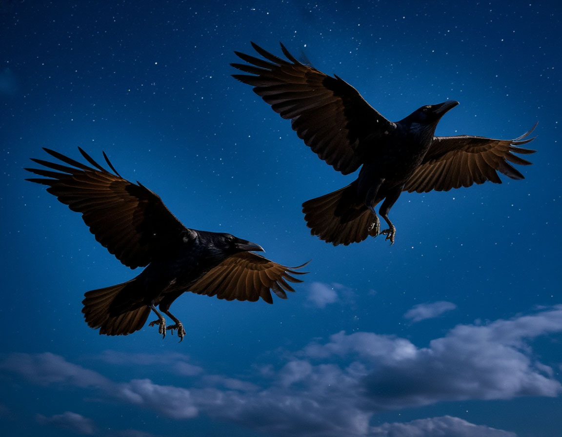 Он невольно поднял голову зацепился взглядом за двух чёрных воронов, почти неразличимых на фоне ночного неба.