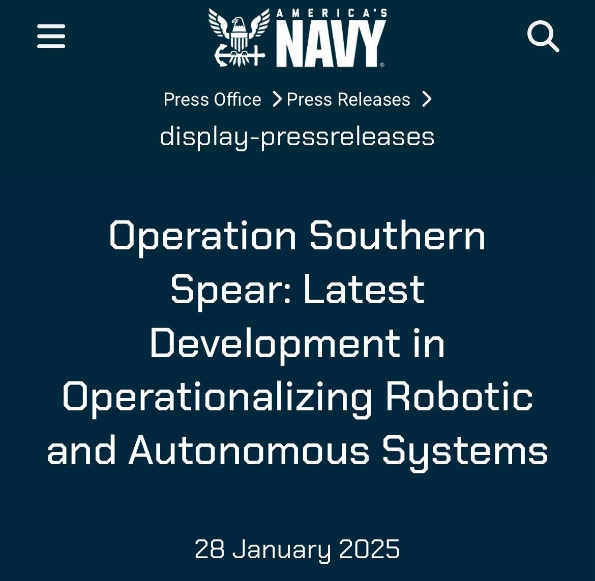 ԱՄՆ Պատերազմի Վարչության քարտուղար Պիթ Հեգսեթը հայտարարում է Վենեսուելայի և սյնտեղից դուրս եկող նավերի դեմ «Հարավային սուր» օպերացիայի սկզբի մասին, որը կղեկավարի ԱՄՆ Զինված Ուժերի Հարավային հրամանատարությունը, և որը նպատակ ունի ոչնչացնել «նարկո-տերորիստներին», որոնց, ըստ հաղորդումների, ԱՄՆ-ն թիրախավորել է դեռ սեպտեմբերից։ Հատկանշական է, որ 2025 թվականի հունվարին ԱՄՆ Նավատորմը հայտարարեց նույն անվամբ օպերացիա անցկացնելու մասին, որը նպատակ ուներ փորձարկել ամերիկյան անօդաչու սարքեր։ Նշենք, որ «Ատլանտիկ» պարբերականը գրել է, որ Թրամփի վարչակազմը ունի վստահություն, որ Կրեմլը չի կարողանա լիարժեք օգնություն ցուցաբերել Վենեսուելային, ինչը ավելի հավանական է դարձնում ԱՄՆ կողմից այդ երկրի նկատմամբ ռազմական ագրեսիան։