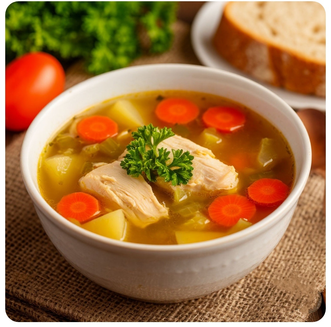 Аромат куриного бульона, ласкающий обоняние, словно мягкое прикосновение осеннего солнца. Золотистая жидкость, играющая отблесками света, манит к себе, обещая тепло и уют. Куриный суп с овощами – это не просто блюдо, это симфония вкусов и текстур, гармонично переплетающихся в одной тарелке. Сначала – нежность куриного мяса, распадающегося на волокна при малейшем прикосновении ложки. Оно словно тает во рту, оставляя приятное послевкусие, напоминающее о домашнем очаге и заботливых руках. Затем – россыпь нарезанных кубиков моркови, придающих супу сладковатый оттенок и яркость. Картофель, скромно притаившийся на дне тарелки, дарит супу свою кремовость и сытность. Он является той надежной опорой, на которой держится вся эта вкусовая конструкция. Лук, деликатно обжаренный до золотистого цвета, добавляет пикантности и легкой остроты. Его присутствие едва уловимо, но именно оно придает супу законченность и глубину. И, конечно же, зелень! Свежий укроп и петрушка, словно изумрудные брызги, расс