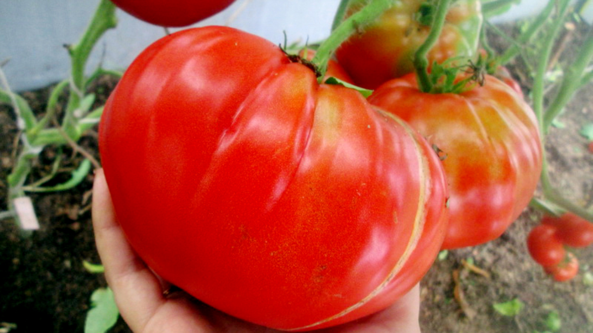 Когда впервые срезал плод «Розового гиганта», думал, что держу в руках небольшой арбуз. Вес, как кирпич, плотность, как будто внутри цельная мякоть без единой пустоты. Томаты от 400 до 800 граммов, а иногда и все килограммы подступают, если куст побаловать.