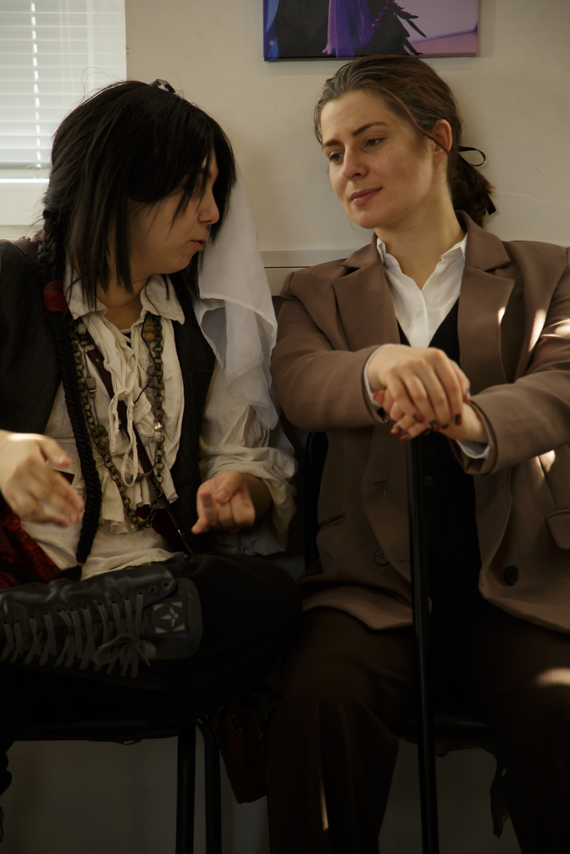 Танцвечер был посвящён альтернативной истории в мире Этерны, по которой у ряда людей вдруг появились вытатуированные знаки на руках. Король кинул клич по всем королевствам, чтобы люди с такими знаками прибыли на бал, дабы разобраться в чём дело. Причём знаки были парные: у одного, к примеру, сердце, а у другого — сердце и песочные часы с обратным отсчётом времени. Связаны оказались те, кто испытывает друг к другу сильную любовь или ненависть. Жизнь одного зависела от милости другого, и повезло, если вторым был любящий тебя человек. Честно скажу, для меня лично вечер не удался. Я ехала главным злодеем всея Этерны, Августом Штанцлером. Зачем я поехала? Ещё с прошлого года у меня висит незакрытый гештальт — я хочу максимально достоверно сыграть главного злодея полигона. В прошлом году я поддалась мастерскому произволу и заруинила великолепный образ графа де Морсер. В этом году попытка сыграть Штанцлера была ещё более жалкой. Начиная с того, что я улыбалась (видно на фото), в отличие от