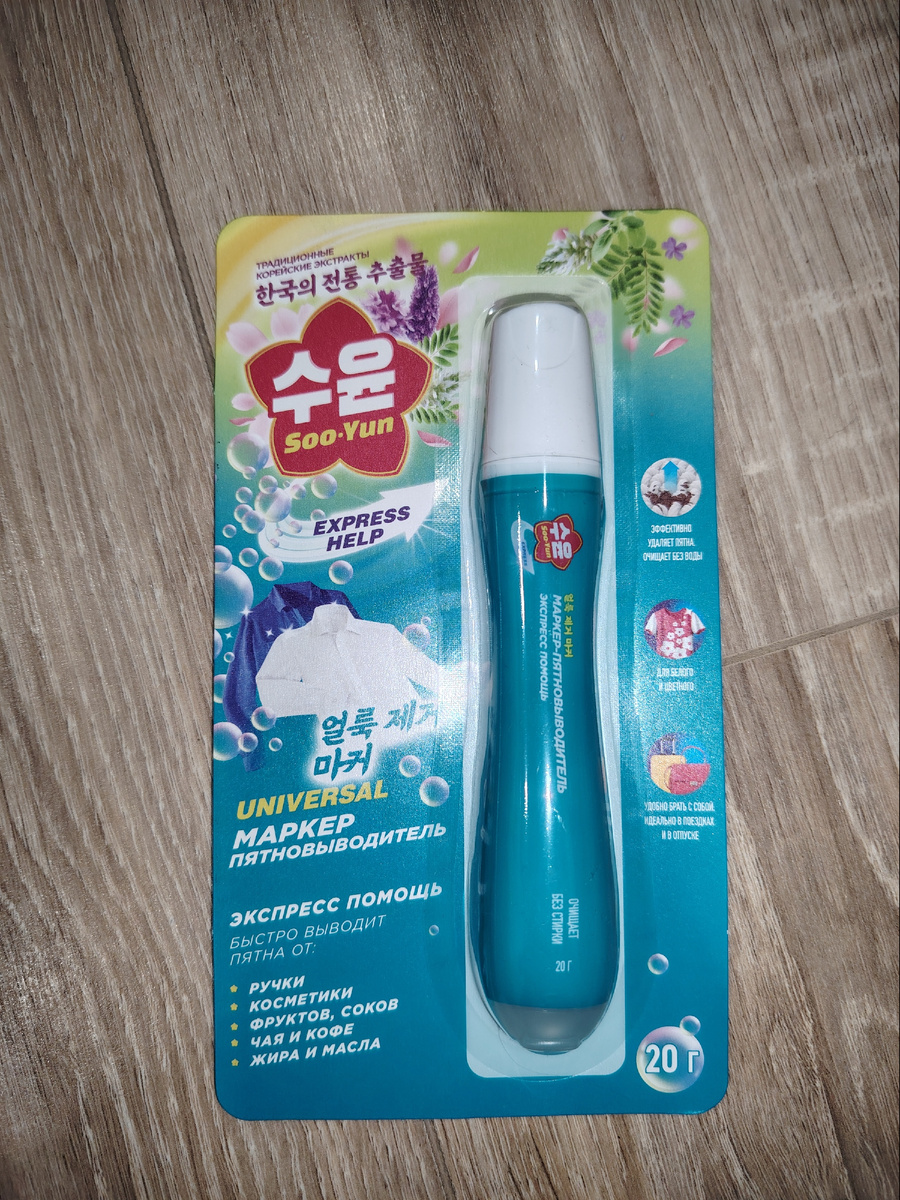 Недавно у Фаберлик вышла новинка - маркер пятновыводитель из линейки Soo-Yun. Маркер обещает быстро выводить пятна от ручки, косметики, фруктов, соков, чая и конфет, жира и масла. Можно экстренно удалять пятна и предварительно обрабатывать вещи перед стиркой. Сначала я решила опробовать его на пятнах от ручки. Сын положил в карман школьных брюк ручку, она у него там протекла, а когда он снимал брюки испачкал диван. Я ненесла содержимое маркера, подождала и потерла щеточкой, которая на маркере. Пятна полностью не вывелись, к тому же добавились разводы. Тогда я взяла проверенное средство - пенный очиститель для ковров, тканей и обивок. Он прекрасно все почистил как и всегда. Я решила дать маркеру второй шанс - дочь испачкала черной краской свою любимую футболку. Не знаю что там за краски у них в садике, но у меня еще ничем не получилось их вывести. Нанесла пятновыводитель на пятно и потерла щеточкой. Как я ни старалось пятно не исчезало, поэтому я дополнительно забрызгала его мул