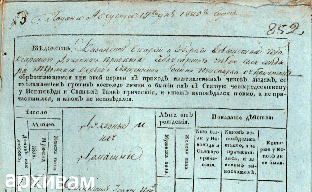 1825 год. Село Сундырь. Чебоксарский уезд. Коротков Василий Иванович.