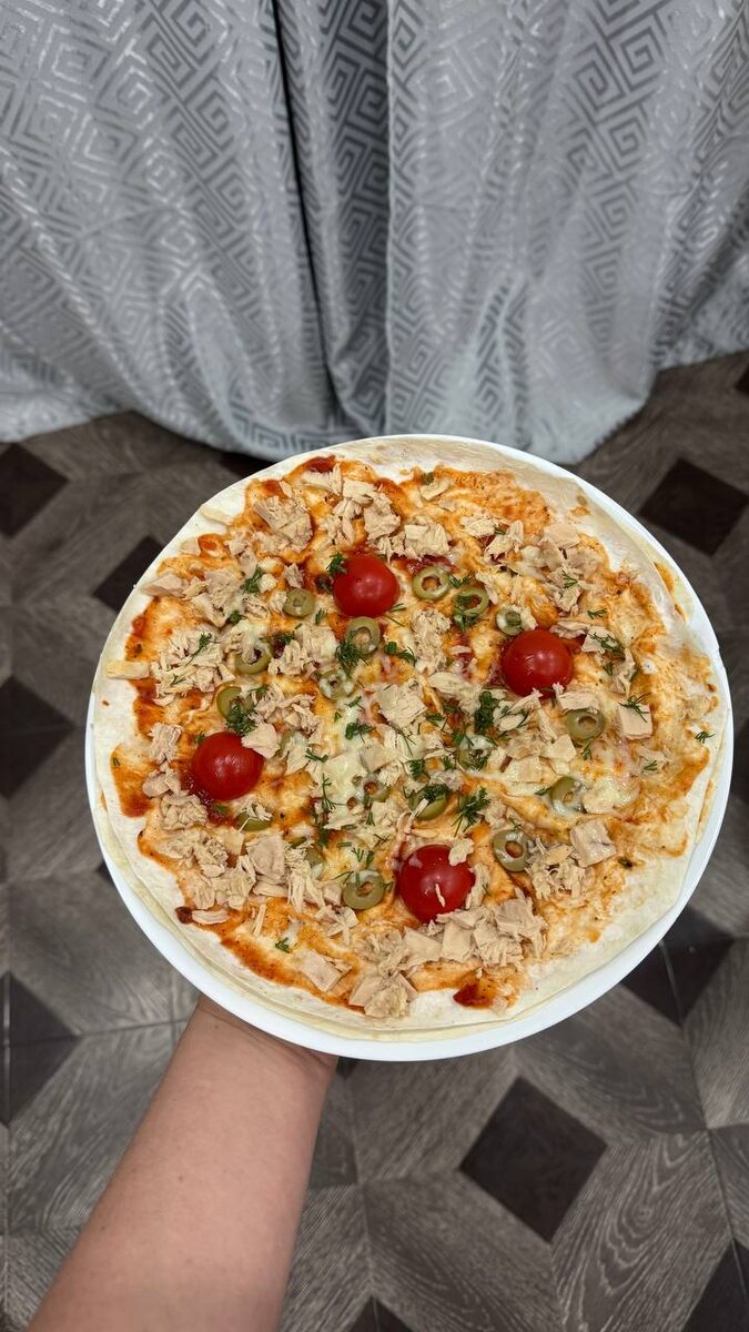 Пицца на лаваше 〰️〰️〰️〰️〰️〰️ 2 листа лаваша 25 грамм кетчупа/томатной пасты 45 грамм сыра твердого 60 грамм тунца в с/с 20 грамм оливок 50 грамм помидоров Зелень по вкусу 〰️〰️〰️〰️〰️〰️ С помощью тарелки вырезаем из лаваша 2 круга. Это будет основа. Можно взять сразу круглые лаваши. Кладем первый лист на сковородку и смазываем кетчупом. Выкладываем половину натертого сыра. Сверху второй лист и опять же смазываем соусом. Выкладываем тунец, помидоры и оливки. Сверху вторая половина сыра. Накрываем крышкой и томим на медленном огне пока сыр не расплавится. Если не помещается в сковородку, то можно запечь буквально 5 минут при 180 градусах. Перед подачей можно украсить. ⚪️⚪️⚪️⚪️⚪️⚪️⚪️⚪️⚪️ ⚪️⚪️⚪️⚪️⚪️⚪️⚪️⚪️🍃 ➖сохраняйте рецепт ➖давайте обратную связь ➖делитесь каналом с подругой Домохозяйка в сети #dm_завтрак #dm_обед #dm_перекус #dm_ужин