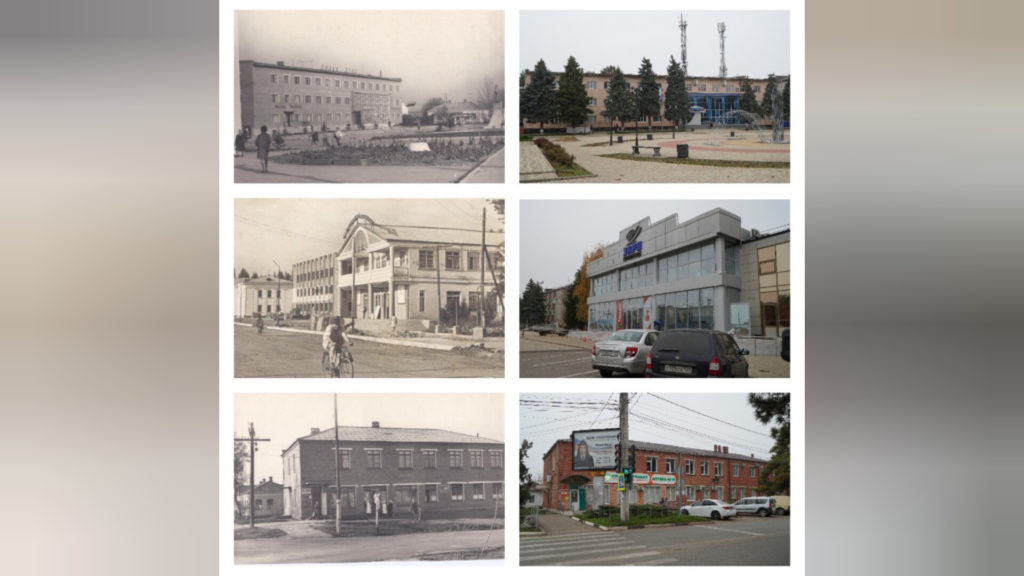 Центр Тимашевска, каким его знают современные жители, сформировался полвека назад в ходе масштабной перестройки к 100-летию со дня рождения Ленина. Здания — почтамт и центральная аптека — открылись в 1970 году, тогда же летом центральная площадь города впервые увидела асфальт. За прошедшие десятилетия эти объекты изменились, но их первоначальный вид сохранился на страницах газеты «Знамя труда» и в памяти старожилов.