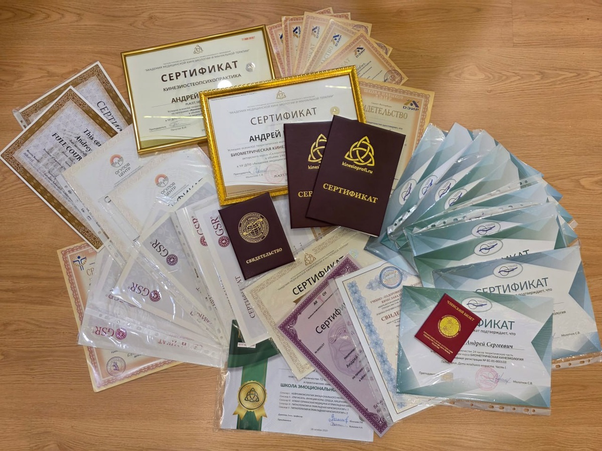 Друзья, здравствуйте! Благодарю, за ваши комментарии и догадки — многие действительно почувствовали, в каком направлении я развивался последнее время. Те, кто знакомы со мной лично, знают, что порой одновременно я прохожу до 8 разных обучений и все это опробую на практике тщательно отбирая только то, что дает лучший результат. На фото краткий, но далеко не полный ответ на вопрос из предыдущего поста (часть сертификатов в другом городе, а часть в электронном виде). Если обобщить по направлениям, то: • Прикладная и биометрическая кинезиология • Остеопатия • Психоэмоциональная коррекция • Биоэнергетика и целительство • Германская Новая Медицина • GSR (Глубинная система развития), я влюбился в этот метод за его глубину, эффективность и возможность работать онлайн по всему миру. Все эти направления дополняют друг друга. И именно их комбинация позволяет работать глубоко, бережно и эффективно. А о каких методах Вам было бы интересно узнать подробнее?