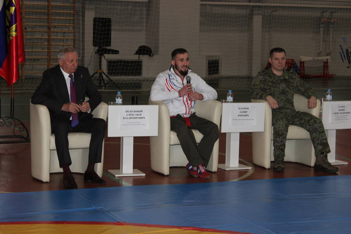 20 ноября, в физкультурно-оздоровительном комплексе «Стародуб» состоялось значимое событие - встреча с чемпионом мира Дамиром Казановым, который завоевал этот титул в составе сборной России на недавнем чемпионате мира в г. Рязань. На мероприятие собрались обучающиеся спортивной школы, кадеты, учащиеся городских школ и военнослужащие. Среди почетных гостей были глава администрации Стародубского округа Александр Подольный и начальник отдела пограничного управления ФСБ России по Брянской области в г. Стародубе Юрий Гаджа. Началась встреча с показательных выступлений обучающихся отделения по рукопашному бою спортивной школы и музыкальной композиции «Русская рать» в исполнении трио «Вереск» ЦДК. Затем от ведущей собравшиеся узнали, что Дамир Казанов родился в Кабардино-Балкарии. С 8 лет начал заниматься в секции по рукопашному бою в своем селе. После окончания средней школы закончил Калининградский пограничный институт Федеральной службы безопасности РФ. В 2022 году переехал в Стародуб. Он