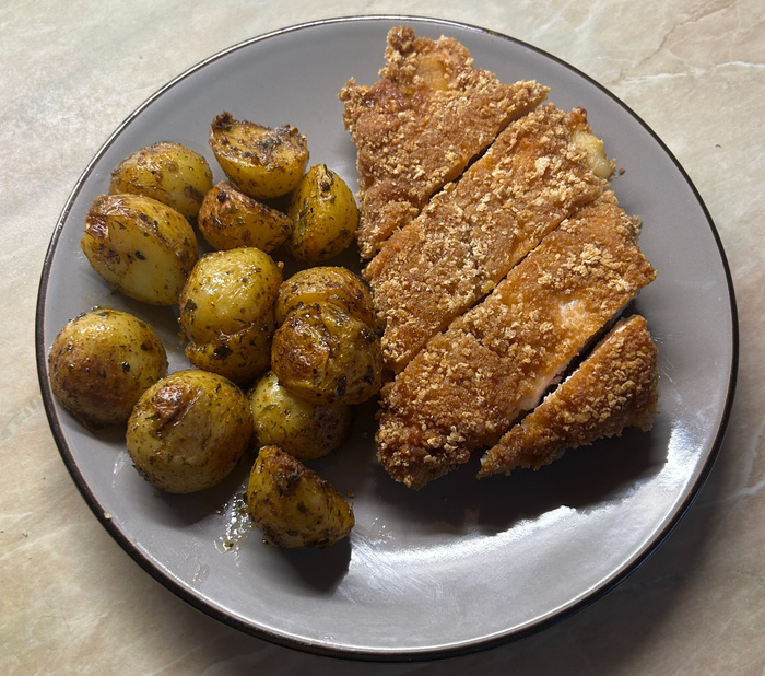 Всем, привет! несколько дней не доходили руки до этого рецепта, хотя он приготовлен ещё в субботу и тогда же отфоткан... но вот под конец недели я добрался, дожил, завтра пятница и наконец отдохнуть, а мы с вами сегодня приготовим вкусное блюдо, не могу сказать что быстрое и легкое, но постараюсь, всё немного разжевать, и так что мы получим в конце: Что нам потребуется (разделил на 2 части): Кордон Блю: Филе куриной грудки: ~750гр - брал не крупную пачку. Яйца: 2шт - не смотрим на фото!. Ломтики ветчины: 8шт - я беру любую готовую нарезку и обычно почти пачка уходит. не смотрим на фото!. Твердый сыр слайсами: 8шт. - Примерно так же как ветчины, я брал чеддер, хорошо подходят так же гауда и эмменталь, так же беру пачку готовой нарезки. не смотрим на фото!. Мука: 1\2 стакана - обычная, пшеничная. Панировочные сухари: 2 стакана - не смотрим на фото!. Паприка: 2 ст.л. - я закинул копченую, если любите и знаете ее вкус, повторяйте, если нет берите обычную, не знаете точно берите 50\50. Соль