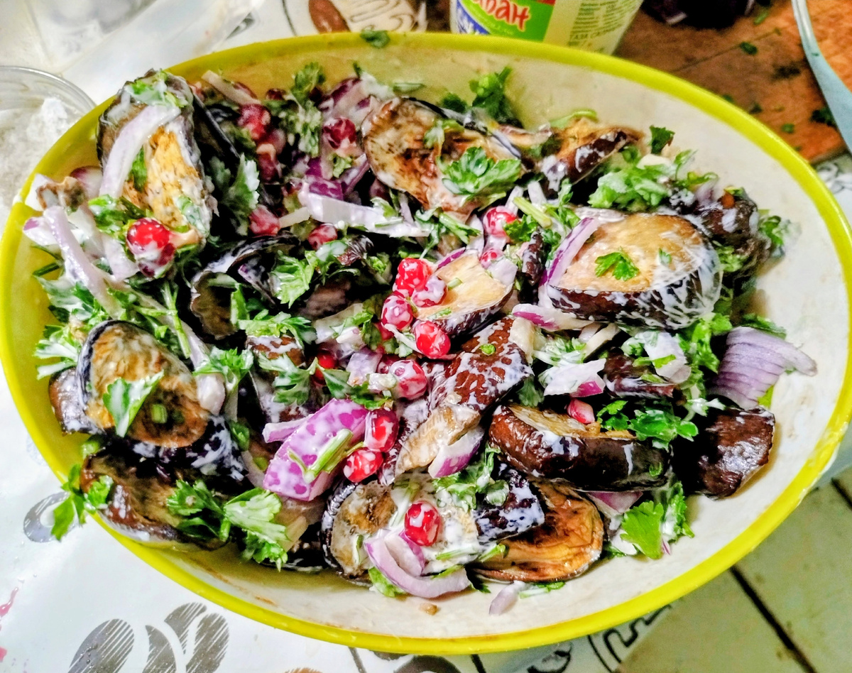 Всем отличной пятницы и с наступающими выходными 🥳 Раз недавно освещалась тема салатов, и были такие ядрёные салатики, то сегодня салат не менее витаминный, но уже со сладко-кислым привкусом. Но нет, сахар или подсластитель не кладём, а сладость с кислинкой придаст гранат. Салат от нутрициолога Дарьи Третьяковой с баклажанами и гранатом. 😋 "Баклажан крупный-1шт Лук фиолетовый сладкий-1/4шт Зёрна граната-30гр Оливковое масло-1ст ложка Греческий йогурт-2ст ложки Лимон или лайм-1/4 шт Кориандр молотый Кинза Соль Способ приготовления: Баклажаны нарезать колечками шириной 1,5-2 см, сбрызнуть маслом и запечь в духовке около 30 минут при 180’С. Смешать греческий йогурт или не слишком жирную сметану, сок лайма или лимона, кориандр, соль. Лук нарезать полукольцами. Баклажаны охладить, выложить в салатник, сверху добавить лук, соус и зёрна граната." #wellnesshedonism Вместо йогурта для заправки подойдёт и сметана. Приведены ингредиенты на одну порцию, я делала побольше. Думаю, если нет крас