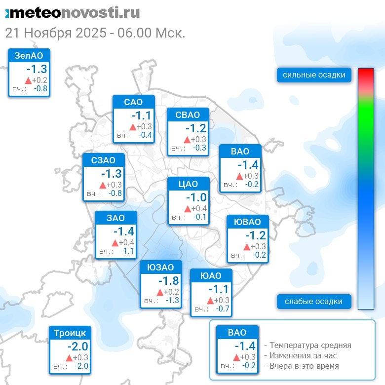 В 6:00 в Москве было от -2.1°C до -0.8°C, средняя температура -1.2°C #погода #Москва #осень #температура #21ноября #пятница Перейти на сайт Прогноз погоды на 14 дней