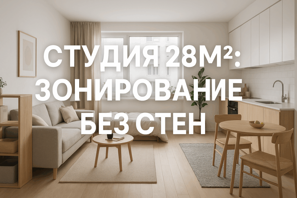 Студия 28 квадратов — вызов даже для опытного дизайнера. Нужно уместить спальню, гостиную, кухню и рабочую зону, при этом не превратить квартиру в склад мебели. Главное правило — зонирование без стен. Перегородки съедят и так скромные метры.