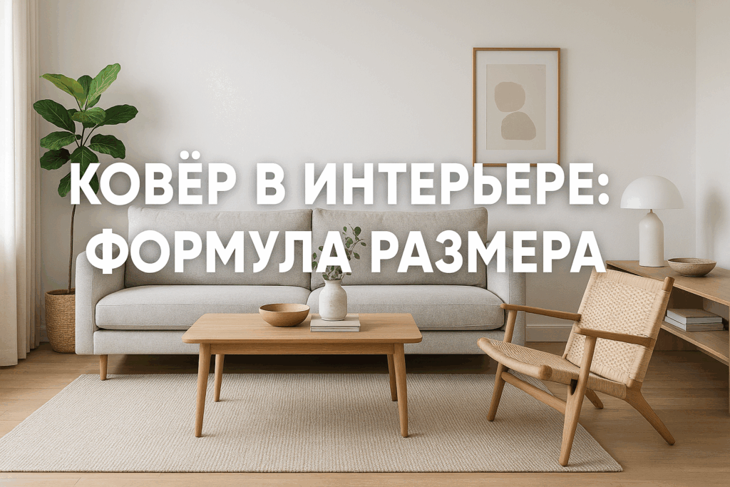 Ковер — не декор, а инструмент зонирования. Он показывает: эта мебель работает вместе. Поэтому размер считается от расстановки мебели, а не от площади комнаты.
