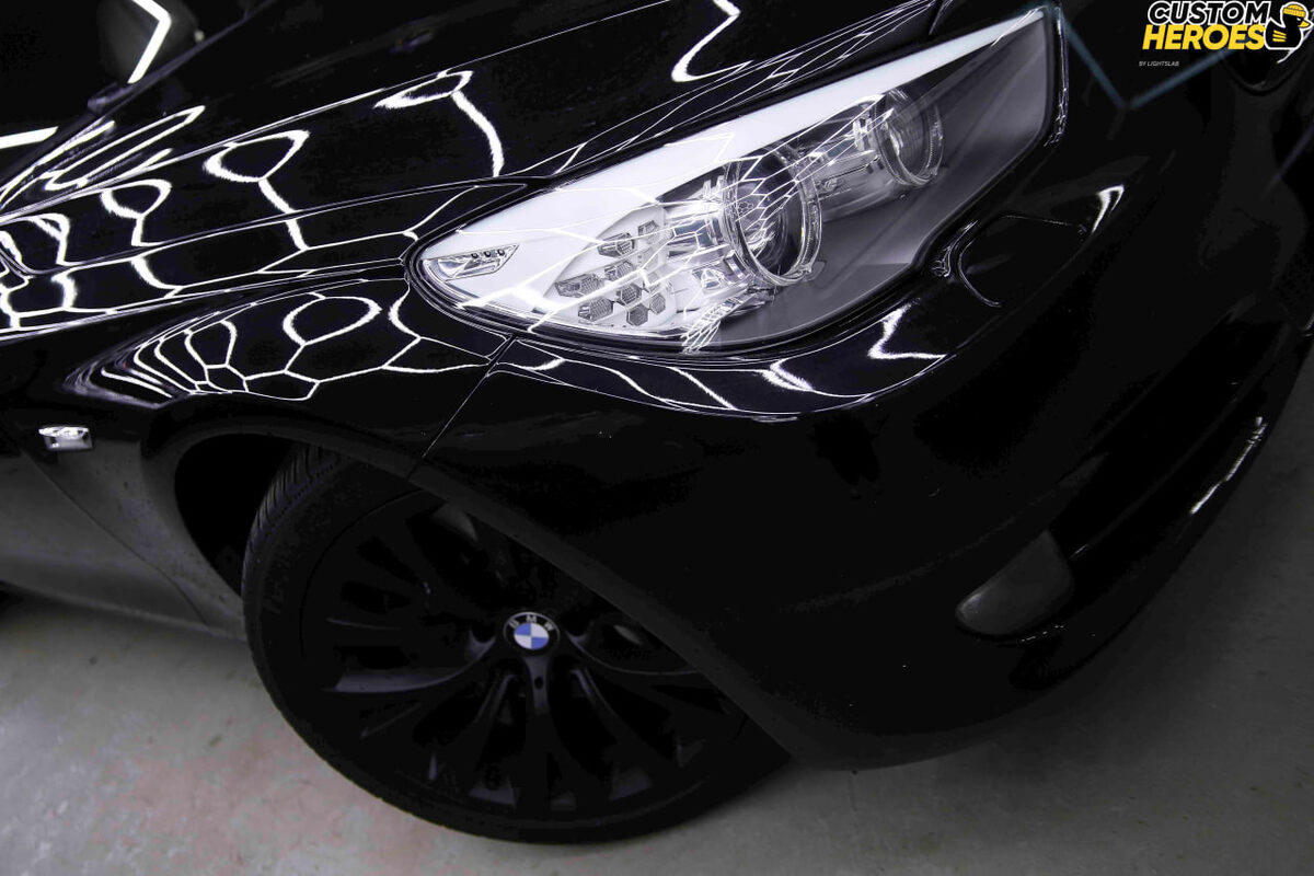 Приветствуем всех новых и постоянных читателей нашего блога! В наш детейлинг-центр Custom Heroes приехал владелец BMW 530d с задачей обновить оптику — фары стали светить тускло, а ближний свет потерял фокусировку. После диагностики было принято решение о замене линз фар на современные Bi-LED модули с более высокой яркостью и чёткой светотеневой границей. При проверке специалисты Custom Heroes выявили, что штатные линзы со временем утратили прозрачность: отражающий слой выгорел, а сама фокусировка света нарушилась. Это типичная проблема для автомобилей BMW, особенно после нескольких лет эксплуатации. Из-за этого световой поток стал рассеянным и слабо освещал дорогу в ночное время. Для восстановления яркости и геометрии света было принято решение заменить линзы на современные Bi-LED модули, обеспечивающие равномерное распределение света и комфортное освещение без ослепления встречного потока. После установки новых линз свет стал ярким и чётким. Светотеневая граница ровная, без размытых у