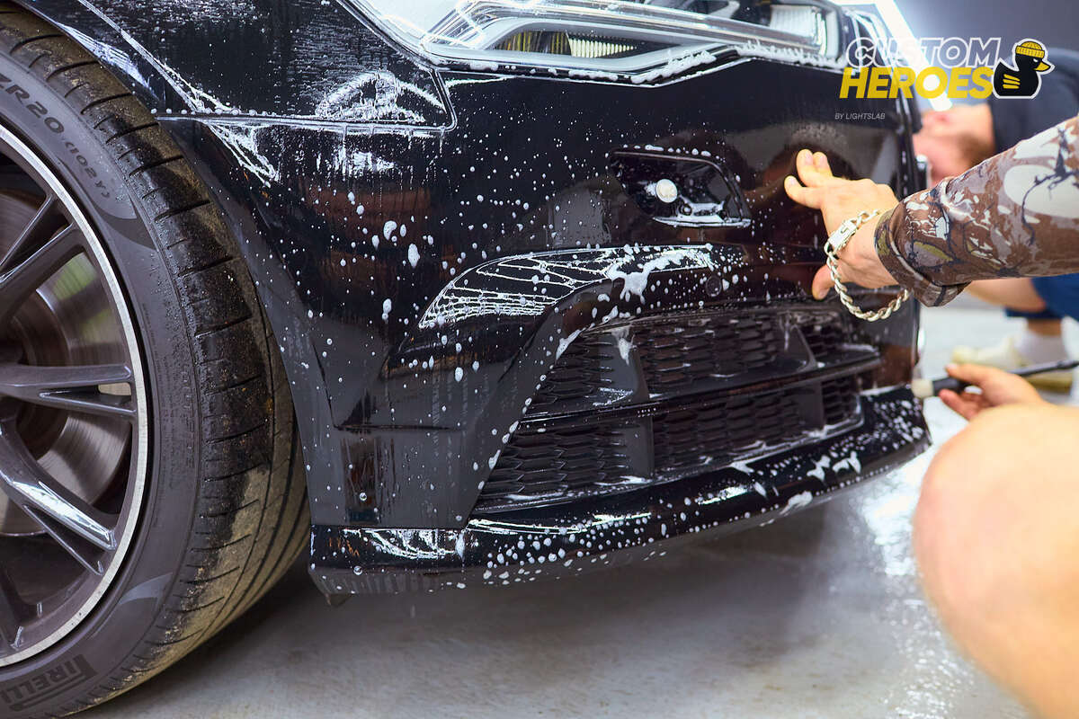 Audi A6 C7 Avant (2014–2018) в кузове рестайлинг — это премиальный универсал, который олицетворяет собой баланс между динамикой, комфортом и практичностью. Автомобиль построен на модульной платформе MLB, что дало ему более жесткий кузов и точную управляемость. Версия с дизельным мотором 3.0 V6 TDI Quattro заслуживает особого внимания, ведь она сочетает экономичность, надежность и фирменную систему полного привода Audi. Несмотря на премиальный уровень автомобиля, у A6 C7 Avant, как и у других машин, фары и элементы переднего бампера подвергаются агрессивным воздействиям: камни, песок, дорожные реагенты и ультрафиолет постепенно портят внешний вид оптики и лакокрасочного покрытия. Со временем на фарах появляются мутность, сколы и микротрещины, а бампер теряет свой первоначальный блеск. Теперь Audi A6 C7 Avant 3.0 V6 TDI Quattro надежно защищен от дорожных факторов. Фары снова сияют, а бампер сохраняет идеальный внешний вид даже в условиях активной эксплуатации. Такой подход не только сох