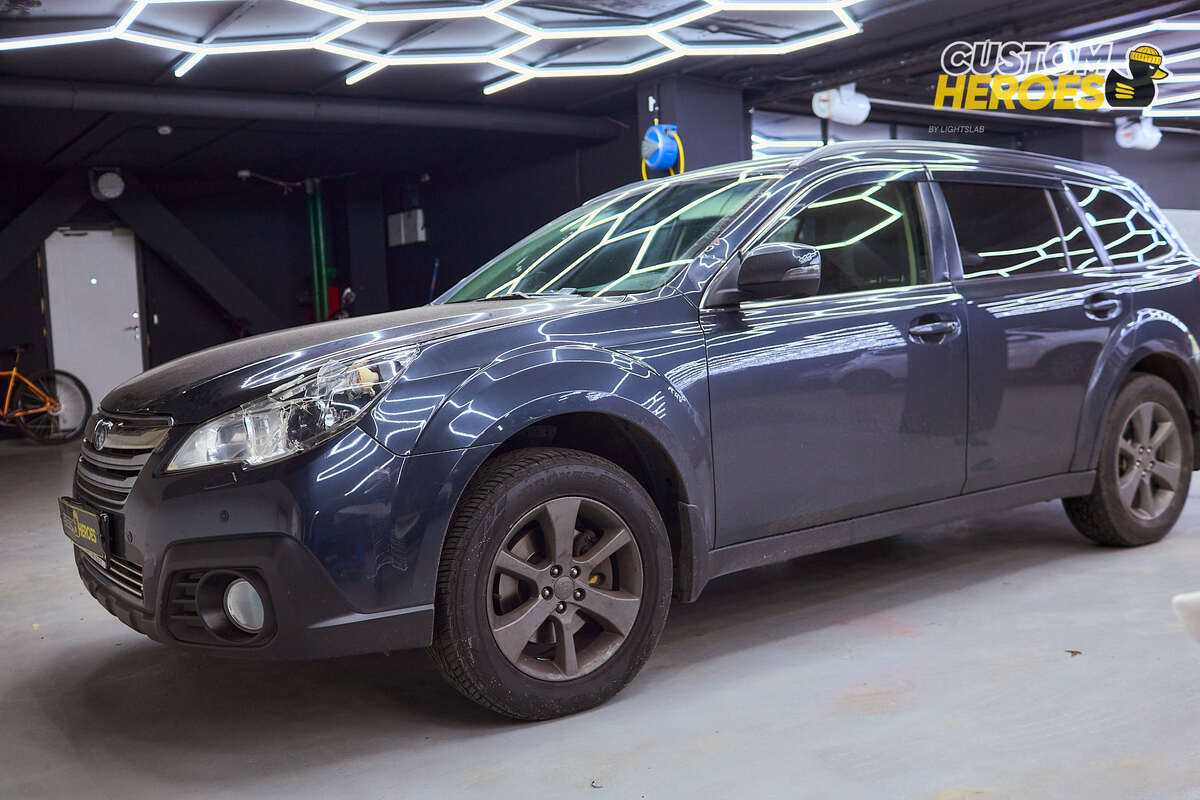 Приветствуем всех новых и постоянных читателей нашего блога! Сегодня в нашей студии Custom Heroes побывал практичный и надёжный универсал повышенной проходимости — Subaru Outback четвёртого поколения. Этот автомобиль прекрасно сочетает в себе комфорт, просторный салон и фирменный полный привод, который так ценят поклонники марки. Outback одинаково уверенно чувствует себя как на асфальте, так и на лёгком бездорожье, оставаясь при этом отличным семейным автомобилем. Автомобиль поступил к нам с разбитой левой фарой. Повреждение не только портило внешний вид кросс-универсала, но и делало эксплуатацию машины небезопасной — световой поток был нарушен, а сама оптика могла полностью выйти из строя в любой момент. Владелец предоставил в качестве донора фару, находящуюся в хорошем состоянии. Наша задача заключалась в том, чтобы аккуратно демонтировать разбитую оптику, установить донорскую и произвести регулировку для правильного распределения светового потока. Subaru Outback снова выглядит гармо