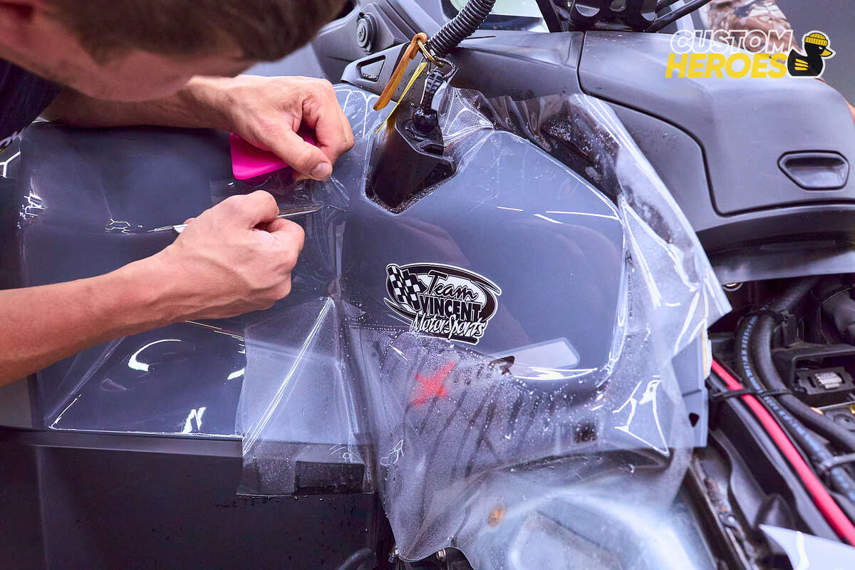 Приветствуем всех новых и постоянных читателей нашего блога! Сегодня в нашей студии Custom Heroes оказался настоящий монстр бездорожья — BRP Can-Am Outlander X MR 1000R . Этот квадроцикл создан для преодоления самых тяжёлых маршрутов: глубокая грязь, болотистая местность, резкие подъемы и спуски. Благодаря мощной подвеске, массивным грязевым шинам и вынесенному радиатору он справляется там, где другие внедорожники бессильны. Но вместе с экстремальной эксплуатацией возникает и другая задача — защита пластика и приборной панели от повреждений. Квадроцикл BRP Can-Am Outlander постоянно подвергается риску: удары веток, летящие камни, грязь и песок разрушают пластик, оставляют царапины и сколы. Со временем внешний вид техники теряет свою привлекательность, а приборная панель начинает тускнеть и покрываться следами эксплуатации. Мы предложили владельцу современное решение — оклейку полиуретановой защитной плёнкой. Это прозрачный, эластичный материал, который надёжно защищает пластиковые дета