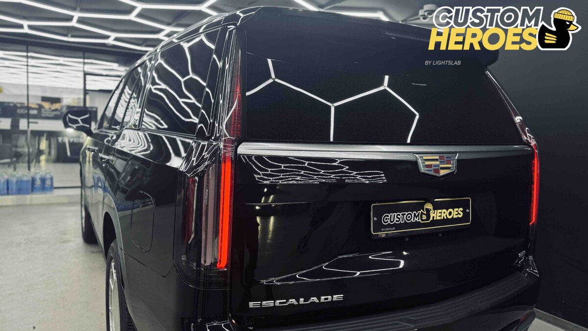 Cadillac Escalade 5 — удлинение заднего стоп-сигнала и доработка оптики Cadillac Escalade 5 — автомобиль, который сам по себе является воплощением роскоши, мощности и статуса. Его узнаваемый дизайн с вертикальными светодиодными фонарями стал фирменной чертой новой генерации модели. Однако владельцы Escalade часто стремятся подчеркнуть индивидуальность и улучшить визуальное восприятие автомобиля. Один из наших клиентов обратился в студию Custom Heroes с просьбой выполнить удлинение заднего стоп-сигнала — услугу, которая делает световой элемент фонаря светящимся во всю длину, придавая автомобилю ещё более выразительный и современный вид. Что представляет собой удлинение стоп-сигнала Заводской стоп-сигнал Escalade имеет ярко выраженные вертикальные световые элементы, но не вся их длина участвует в подсветке при торможении. Мы доработали систему так, чтобы вся линия светодиодов загоралась равномерно по всей высоте фонаря, создавая эффект сплошного «светового столба». Это не просто визуальн