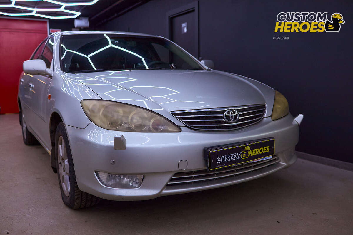 Toyota Camry 30 рестайлинг (2004–2006) — один из самых популярных седанов бизнес-класса своего времени. Автомобиль сочетает просторный салон, комфортную подвеску, надежные двигатели и богатую комплектацию, что сделало его эталоном в своем сегменте. Даже спустя годы Camry 30 ценится за долговечность и безотказность, а также за классический и узнаваемый дизайн. Модель Camry 30 была представлена в начале 2000-х годов и быстро завоевала популярность по всему миру. Рестайлинг 2004 года добавил автомобилю современный внешний вид, обновленную оптику и более качественные материалы в салоне. Среди главных преимуществ: Camry 30 до сих пор пользуется спросом на вторичном рынке благодаря сочетанию надежности и доступности эксплуатации. С годами передняя оптика Toyota Camry теряет прозрачность и герметичность. Стекла мутнеют, появляются царапины и сколы, световой поток снижается. Это делает передвижение в темное время суток небезопасным. Именно с такой проблемой обратился владелец данного автомобил