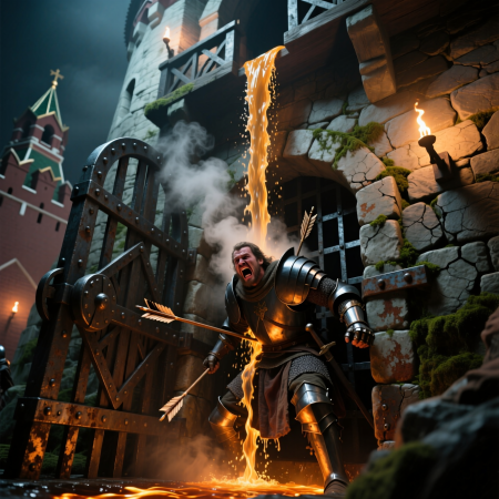 Сверху на него обрушивался шквал стрел и кипятка с верхней галереи, а сзади опускалась тяжелая железная решётка — герса . Выхода не оставалось.
