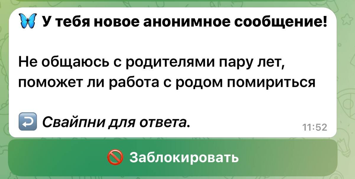 Анонимное сообщение 👆 Благодарю за вопрос!🙏 Вот в таких ситуациях часто работа с Родом помогает. Бывает такое, что человек приходит проработать финансовый Родовой канал, здоровье или с другим запросом, а у него выстраиваются отношения с мужем, детьми, родителями и т.д. Сейчас вспомнила историю, как девушка прорабатывала Родовые финансовые программы и у неё улучшились отношения с Папой, с которым практически не общались. Сейчас найду и прикреплю скрин в комментариях🤗