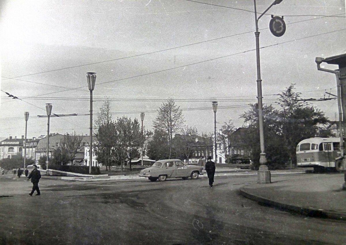 Перекресток улиц Малышева и Белинского, 1966 год. Высоцкого еще нет и в проекте, по улице неторопливо ползет старенький 158-й ЛиАЗ
