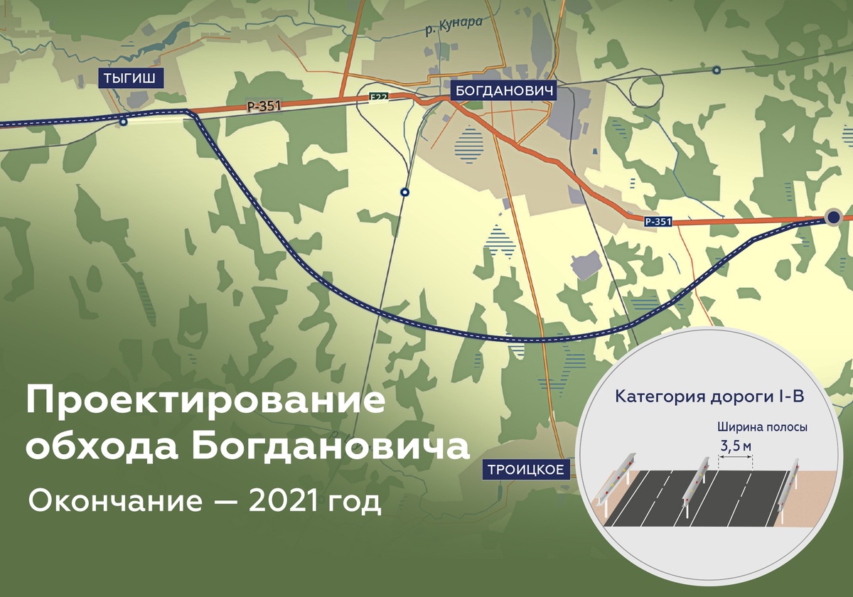 По информации портала Roads.ru, участок проекта — «обход Богдановича» — предназначен именно для выведения части трассы из городского ядра и создания более комфортной и безопасной дороги.