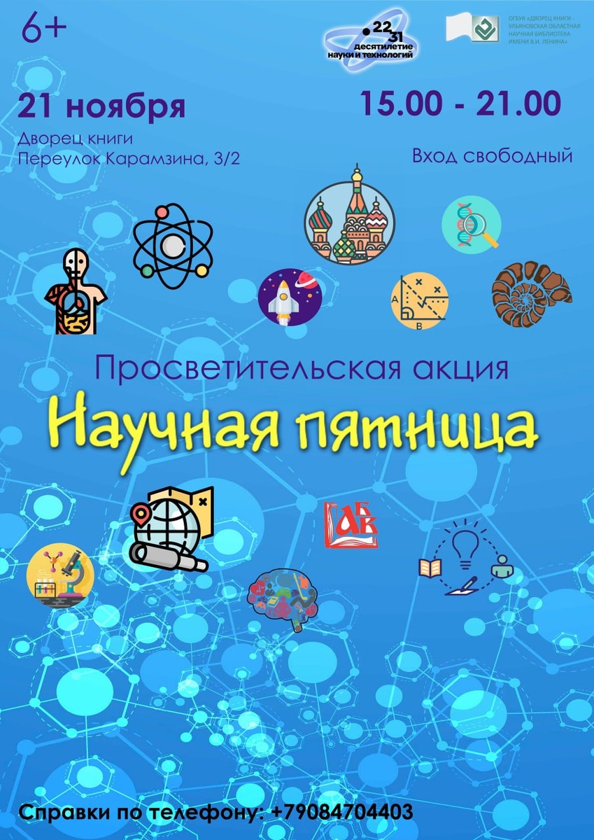 💥Уже сегодня! 21 ноября с 15.00 до 21.00! ✅Вход свободный (некоторые мероприятия платные, действует Пушкинская карта) 🤪Любители науки смогут: - принять участие в чайной церемонии и узнать всё о химии чая - познакомиться с масштабной выставкой энциклопедий - решить нескучные задачки по математике - раскрыть тайны литературной флористики - изготовить старинную игрушку - тауматроп - поучаствовать в краеведческом квизе "Симбирский экспресс" - вспомнить основы астрономии 🧬Вас ждут викторины, просмотры документальных фильмов, интерактивные программы. 🔭Не пропустите: 🖍Встреча с фольклористом Евгением Сафроновым в 18.00 📝Встреча с архитектором Александром Желониным в 17.00 📜Площадка АбакусКидс с мастер-классом по ментальной математике с 15.00. до 19.00 🔎Интерактивная площадка «Поразительная зоология»/ Музей естественной истории ДКТМ с 15.00 до 17.00 📙Общение со специалистами краеведческого музея на площадке "Природа Ульяновской области" с 18.00 до 21.00 📝Баннерная выставка