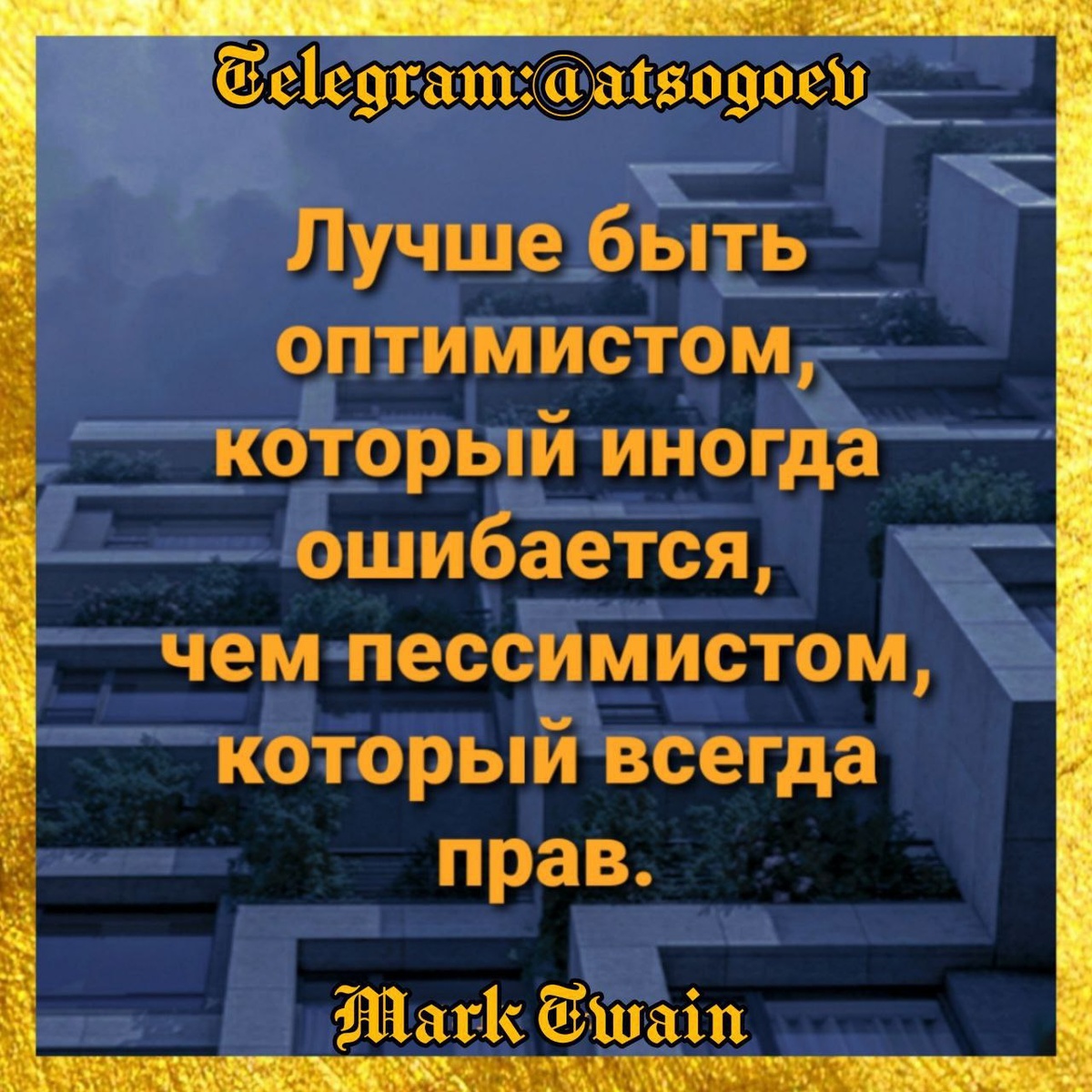 Много негатива и тревожности вокруг. Во всяком случае я так вижу. И вот что я хотел бы по этому поводу сказать... Часто люди (не все, конечно) начинают что-то активно делать и менять вокруг себя в двух состояниях - крайняя форма страха и крайняя форма веры в светлое будущее. Страх это природный инструмент, направленный на сохранение жизни человека. Но иногда от страха случается оцепенение, а это более опасное для жизни состояние. Или уныние, когда «руки опускаются» - тоже плохо, непродуктивно и фатально. Ежеминутный думскроллинг, то есть потребление негативных новостей в тг-каналах, разборки в чатах и прослушивание апокалиптических прогнозов не ведут ни к чему хорошему. Напротив, оптимизм и вера в хорошее позволяют человеку двигаться вперёд и делать свою жизнь (и жизнь окружающих) лучше. Напоминаю историю про двух лягушек и сметану... В общем, я уже очень давно для себя выбрал формулу Марка Твена (см. золотую рамочку). Стараюсь в границах своего канала проповедовать оптимизм, по