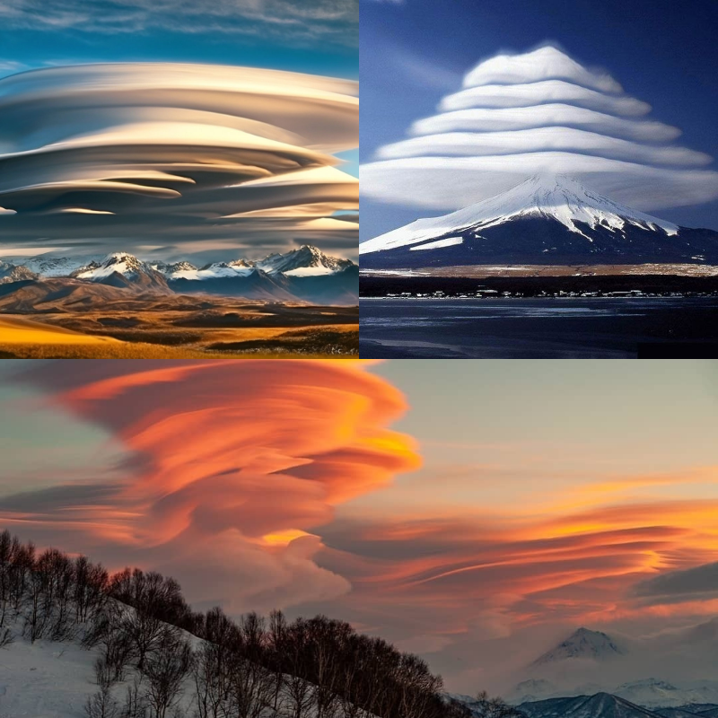 Начало.. часть2... *****Лентикулярные облака***** Лентикулярные (линзовидные) облака - редкое природное явление. Облака в форме линзы неподвижно стоят, как приклеенные, несмотря на ветер. Наблюдаются такие облака, как правило, с подветренной стороны горных хребтов на высоте от 2 до 15 км. Появление лентикулярных облаков свидетельствует о сильных горизонтальных потоках воздуха, образующих волны над горными препятствиями, и связано с приближением атмосферного фронта или с энергичным переносом воздуха из отдаленных районов. Согласно данным из открытых источников, лентикулярные облака образуются на гребне воздушной волны или между двумя воздушными слоями. Такие облака не меняют своего положения даже при сильном ветре. Возникновение лентикулярных облаков свидетельствует, в частности, о высокой влажности воздуха. В волновых потоках происходит непрерывный процесс конденсации водяных паров при достижении высоты точки росы и испарения при нисходящем движении воздуха. Поэтому чечевицеобразн