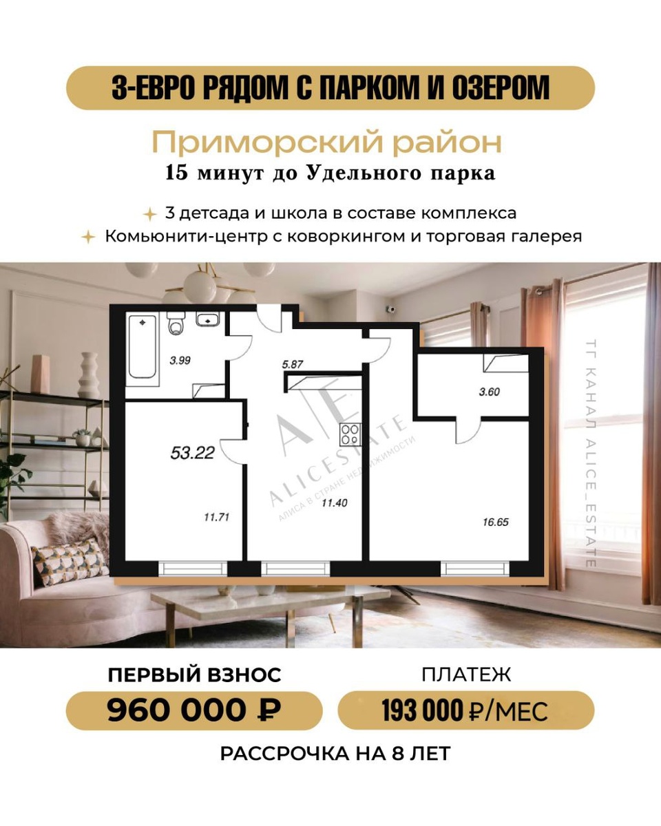 15 минут до Удельного парка: рассрочка на 8 лет 🔥 🔽 сниженный первый взнос 🔽 выгодная альтернатива ипотеке 📍Приморский район, 15 минут до метро «Озерки» Комплекс состоит из 9 малоэтажных домов и 8 башен. С трех сторон он окружен лесным массивом, что обеспечивает хорошую экологию и потрясающие виды из окна. 🔻 3 детских сада и школа 🔻 комьюнити-центр 🔻 лапомойки в парадных Подписывайтесь и ставьте ➕, расскажу подробности 💙
