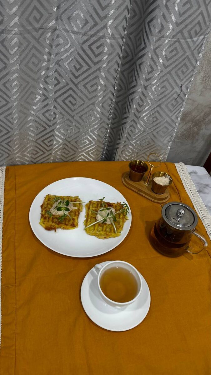 Сегодня наш завтрак мог бы украсить меню самого взыскательного ресторана: хрустящие картофельные вафли с нежным соусом