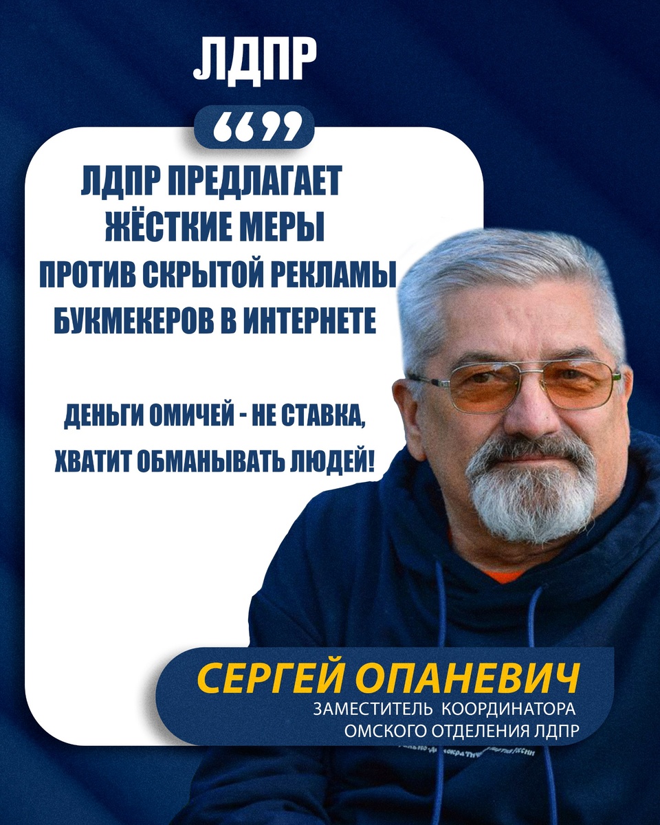 ⚡Депутаты ЛДПР внесли в Госдуму законопроект, который устанавливает отдельную строгую статью в КоАП за нарушения в рекламе азартных игр и ставок. Проблема приобрела угрожающие масштабы: реклама букмекерских контор массово проникает в социальные сети, мобильные приложения и даже в детские игры. Цели законопроекта: ✅Пресечь незаконную рекламу, которая обходит все существующие блокировки. ✅Защитить детей, подростков и взрослых от скрытого гемблинга. ✅Остановить манипуляцию сознанием через мини-баннеры и скрытые интеграции в контенте. Сергей Опаневич: «Псевдолёгкие деньги манят людей в долговую яму. Я знаю истории, когда из-за ставок люди теряли всё, теряют последние деньги, семьи рушатся из-за долгов и игровой зависимости. Особенно возмутительно, когда рекламу ставок встраивают в игры, которые скачивают наши дети. Инициатива ЛДПР — это не про запреты, это про защиту. Защиту нашего с вами благополучия, семейного бюджета и психики детей». Эта мера — давно назревший ответ на вызовы време
