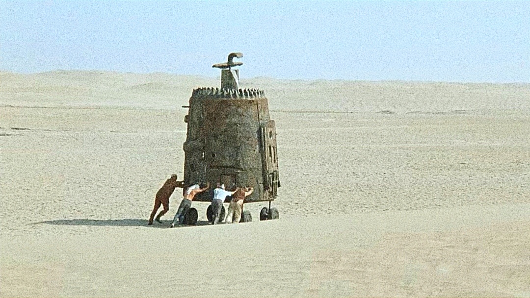 Ржавая пустыня — это не природная катастрофа. Это результат экономической модели. Когда все ресурсы уходят на поддержание иерархии и контроля, на реальное развитие ничего не остаётся. Данелия визуализировал экономику застоя через буквальную ржавчину.
