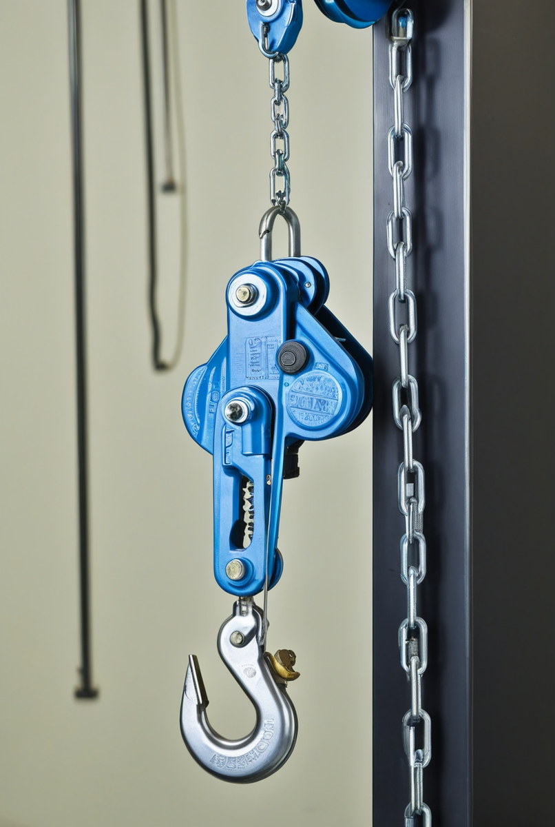 Категорически запрещено. Грузовая цепь (высокопрочная стальная цепь) и крюковая подвеска являются наиболее ответственными элементами, воспринимающими всю нагрузку. Любой самостоятельный ремонт, например, сварка звеньев или попытка выпрямить зев крюка, недопустим. Замена этих компонентов должна производиться исключительно специалистами с использованием оригинальных запчастей. Также всегда проверяйте работоспособность такого элемента, как предохранительная защелка — ее неисправность может привести к срыву груза.