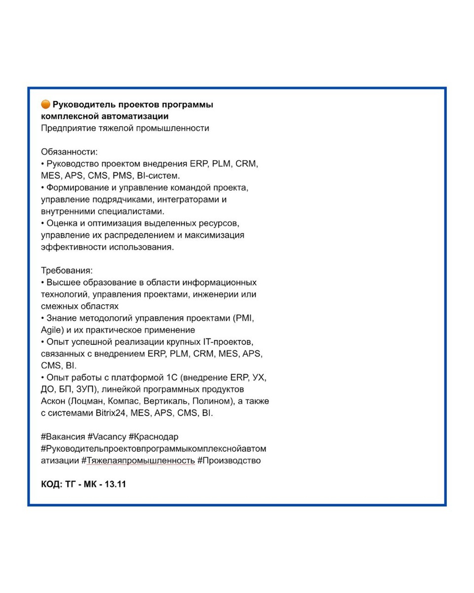 Вакансии из закрытых чатов HR и рекрутеров (10-14 ноября)