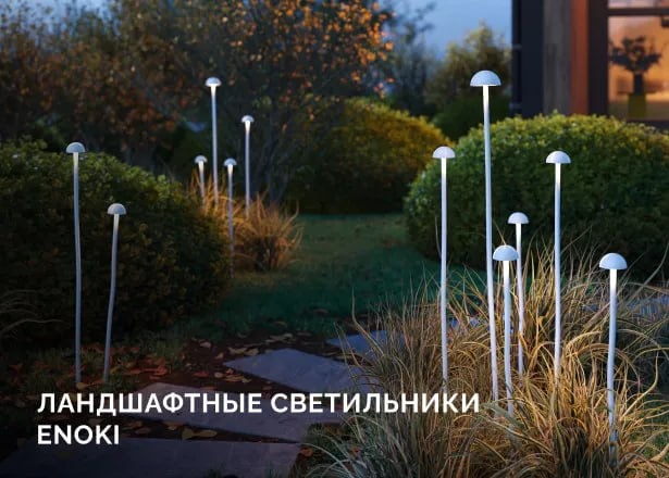 что, если волшебство кроется не в вычурности, а в чистоте линий? Светильники ENOKI — невидимые помощники, которые не кричат о себе, а тихим шепотом направляют свет, создавая атмосферу уюта. ENOKI — для ценителей современной эстетики, где волшебство кроется в пропорциях и чистоте линий. Почему ENOKI — это просто? Дизайн, вдохновленный природой. Их изящный, тонкий силуэт на высокой ножке напоминает стебли тропических растений или дружелюбных лесных эноки из восточных сказок. Они так естественно вписываются в ландшафт, что кажется, будто они росли здесь всегда. Свет, который мягко обнимает. Широкий угол свечения (100°) и теплый свет (3000 К) создают ровное, заливающее сияние без резких границ и теней. Этот свет не ослепляет, а обволакивает, создавая ощущение полной безмятежности. Подходит для зон отдыха, где хочется расслабиться и забыть о суете. Иллюзия живого роста. Три варианта высоты позволяют «вырастить» в саду целую семью светящихся стеблей. Поставьте их рядом с дорожкой, и они