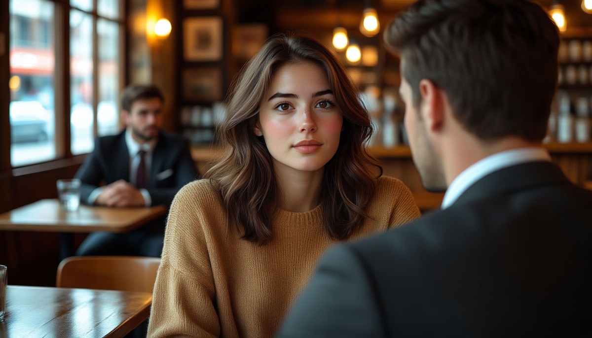 Лена посмотрела на парня в дорогом костюме. Он был красив, но что-то в его лице отталкивало — чувствовалась холодность, надменность. Она даже не могла представить, что такой человек может быть искренним и добрым. Затем перевела взгляд на скромнягу в углу. В его глазах ощущалась какая-то глубина и печаль, которые просто тронули её сердце. В этот момент ей вдруг захотелось узнать его получше, понять, что скрывается за этой грустью.
