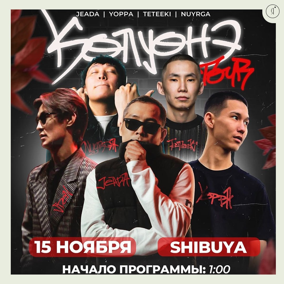 Көлүөнэ Tour 18+ #Вечером #Концерты LINE-UP: * NUYRGA * TETEEKI * YOPPA * JEADA DJ’s SET * DJ NO ONE * DJ ASHIMI 16 ноября | 23:00 | Line-uр с 01:00 SHIBUYA, Кирова, 18а 500-700 руб. Справки по номеру: +79679112032 Online Якутия | Ждем вас в МАХ