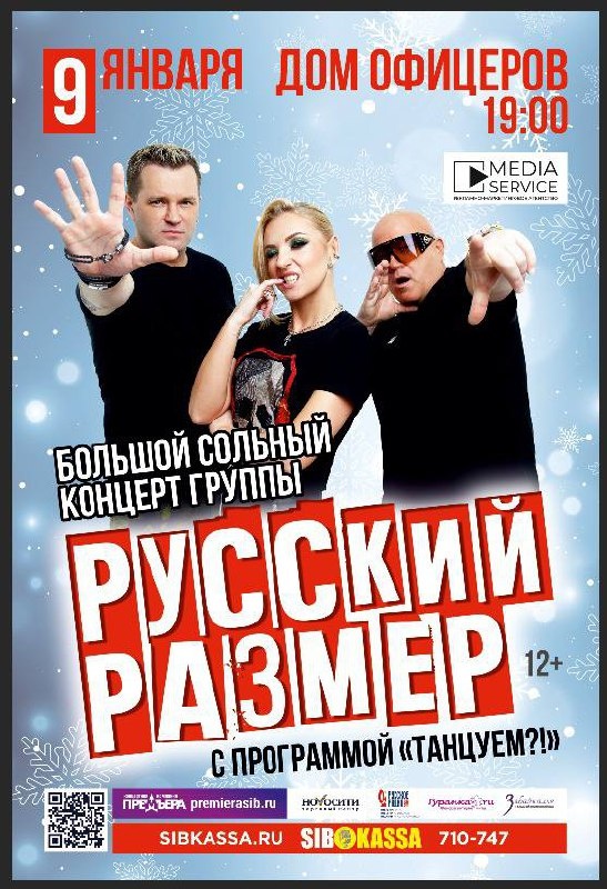 Большой сольный концерт группы «Русский размер»! 📆 9 января (пт) в 19.00 🎫 от 1200 до 3500 📍Дом офицеров, Ленина 88 Билеты по ссылке Легендарный коллектив, любимый многими поколениями, дарит масштабный сольный концерт! Вас ждут все главные хиты — а у этой группы, по сути, каждая песня стала хитом! Яркое шоу, живое общение со зрителями и, конечно же, музыка, которая звучит сквозь время. «Русский размер» ворвался на танцполы 90-х и стал голосом новой эпохи. Их электронное звучание покорило первые клубные вечеринки, а уникальный стиль до сих пор остаётся визитной карточкой коллектива. В программе концерта прозвучат легендарные треки: «Ангел дня», «Весна», «Ю-А-Ю», «Лети», «Звезда разлуки», «Вот так», «Она лежала на земле», «Весь этот мир», «Между небом и землей», «Было и прошло» и многие другие. Продолжительность: 1 час 30 минут #Новости Предложить публикацию:@zabkulisye_bot