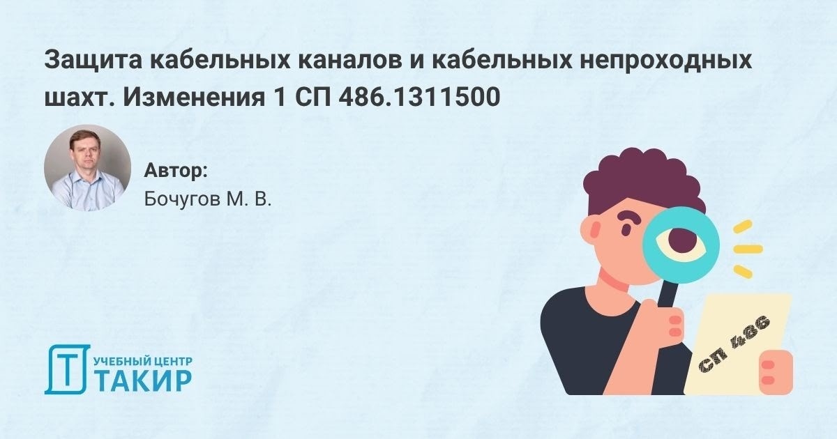 Защита кабельных каналов и кабельных непроходных шахт. Изменения 1 СП 486.1311500 С 16 июня 2025 года вступило в силу Изменение №1 к СП 486.1311500, которое обязывает защищать кабельные каналы и непроходные шахты с объемом горючей массы кабелей более 1,5 л/м кабельной линии. 📌 В чем сложность? В новых правилах — терминологическая путаница. Что считать каналом, а что шахтой? В самом СП 486 есть противоречия, а однозначных определений в нормах ПБ нет. Официальная позиция: ВНИИПО МЧС России в своих разъяснениях рекомендует руководствоваться ПУЭ 6 (п. 2.3.3): ➡️ Кабельный канал — горизонтальное непроходное сооружение, доступ к кабелям в котором возможен только со снятой крышкой. ➡️ Непроходная шахта — вертикальное сооружение со съемной стенкой. Как выполнить требование? В том же ответе ВНИИПО предлагает варианты защиты: ✅ Аспирационные извещатели с вертикальным расположением труб. ✅ Линейные тепловые извещатели (термокабель), проложенные по всей высоте. ✅ Точечные извещатели (тепл