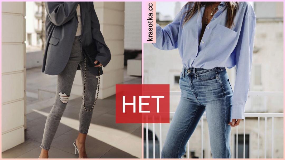 Джинсы – важный элемент гардероба как для девушек, так и для зрелых женщин. Каждый год на рынок выходят новые модели , которые быстро теряют актуальность. Чтобы ваш образ всегда был стильным и модным, следите за трендами и своевременно избавляйтесь от устаревших вещей. Джинсы-скинни, обтягивающие фигуру, стали антитрендом. Они многим девушкам откровенно портили вид, так как такая модели демонстрирует все недостатки силуэта, обтягивая вас, как вторая кожа. Прекрасной альтернативой им являются джинсы высокой посадки прямого кроя. Они отлично замаскируют все недочеты фигуры и скроют недостатки. Читайте также: 15 стильных вариантов как носить джинсы с ботинками, чтобы чувствовать себя комфортно в [year] году Некогда модные рваные джинсы стали не актуальны. Каких только прорезей не делали производители: на коленях, на всю длину, с откровенными огромными «дырами». Отдавая дань моде, многие девушки зарабатывали себе воспаление суставов и различные женские заболевания. Уход таких моделей в неб