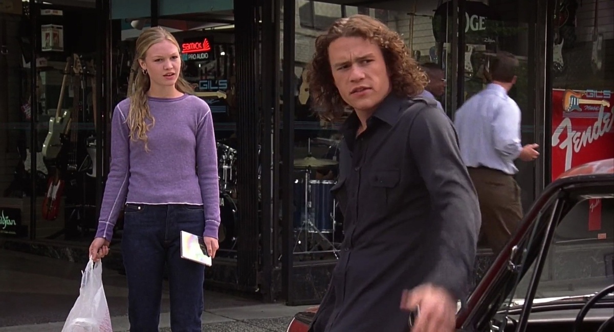 Как полюбить то, что ненавидишь? Перечитываем «10 причин моей ненависти» Сегодня мы с вами отправимся в путешествие по культовому фильму конца девяностых – «10 причин моей ненависти». Если вы еще не видели эту картину или хотите освежить воспоминания о ней, тогда присаживайтесь удобнее и давайте вместе погрузимся в историю Катрин Стратфорд (Джулия Стайлз) и Патрика Вернона (Хит Леджер). О чем фильм? Это романтическая комедия, основанная на пьесе Уильяма Шекспира «Укрощение строптивой». Но здесь история представлена современным языком и через призму подростковой драмы. Фильм рассказывает о двух сестрах, которые живут в одной семье, но абсолютно разные: младшая сестра Бьянка (Лариса Олифант) мечтает о свиданиях и вечеринках, а старшая, Катрин, предпочитает книги и спорт, при этом отвергая любые проявления романтики. Главный герой, школьник-одиночка Патрик Вернон, получает задание от одноклассника Камдена победить сердце Катрин за определенную сумму денег. Для этого ему придется прео