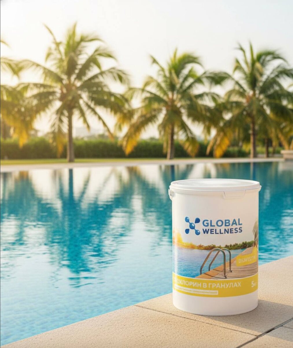 Зачем нужен Экохлорин в гранулах? Экохлорин — это профессиональное средство на основе гипохлорита кальция (Ca(OCl)₂), предназначенное для дезинфекции и стабилизации воды в бассейнах, аквапарках и системах водоподготовки. В отличие от обычных хлорсодержащих препаратов, он сочетает высокую концентрацию активного хлора (до 70%) с контролируемым высвобождением, обеспечивая глубокое обеззараживание без побочных реакций. 🔵Оптимальный диапазон pH воды 7,2–7,6 обеспечивает соотношение HOCl:OCl⁻ ≈ 3:1 — максимальную эффективность дезинфекции при минимальной хлорной агрессии. 🎙Практические параметры применения Первичная обработка: 10–15 г/м³ Поддерживающая дозировка: 1–2 г/м³ (Советуем минимум трижды в день проводить измерения CL и PH с помощью фотометра или ручного тестера.) Рекомендуется вносить препарат в воду бассейна лучше предварительно разбавив холодной водой в эмалированной или пластиковой емкости без следов других химических средств и повреждений и равномерно распределяя по повер