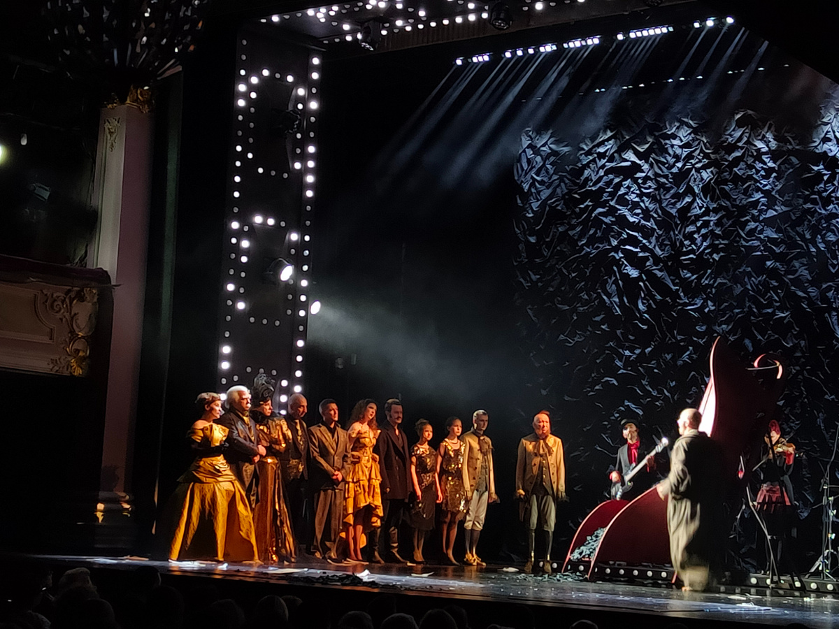 Посетили спектакль «На всякого мудреца, довольно простоты» театра им. Комиссаржевской по мотивам одноименной пьесы Островского. Постановка Александра Баргмана В первую очередь, поражает многослойность спектакля по нарастающей. В прологе мы встречаемся с героями в сцене антуража XIX века. А с каждой сценой добавляются новые пазлы и усиливается напряжение сцен. Чтобы в финале эта огромная масса из образов, людей, музыки, смыслов окончательно поглотила нас. Удивительная находка, каждый элемент постановки органично вписывается при этом играя отдельную значимую роль и это не приводит к разфокусировке внимания, а наоборот усиливает концентрацию на происходящем. Игра свето-теневого рисунка в начале завораживает. Костюмы подобраны так, что не отвести глаз. Яркие акценты, фактуры и такое сочетание времени в них, что они подходят и у прошлому и к настоящему. Хранят каноны светских баллов и при этом вполне подойдут современной моднице. Рок-бэнд ВИА «Жорж» выше всех похвал. Сочетание классики, р