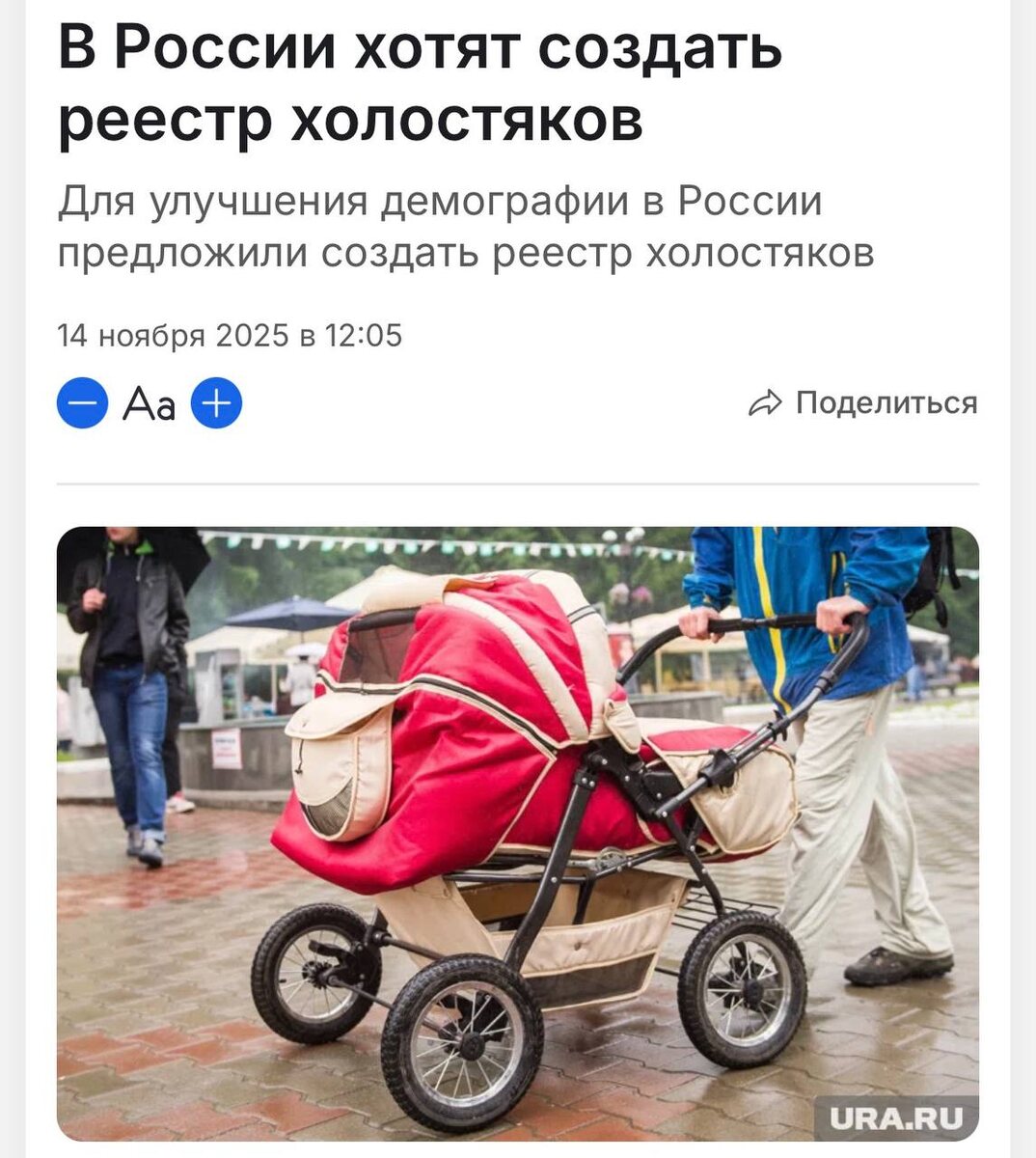 Реестр ХОЛОСТЯКОВ собираются создать в России — он должен помочь поднять рождаемость, следует из инициативы общественников. Инициаторы уверяют, что никакого принуждения не будет — только добровольная база свободных мужчин, которая якобы сможет стимулировать демографию. Чтобы всё работало корректно и не нарушало права одиноких, они предлагают привлечь к разработке систему экспертов по семейному праву. Девушки, готовимся шерстить реестр 🙂 CtrlAltDelights- подписаться