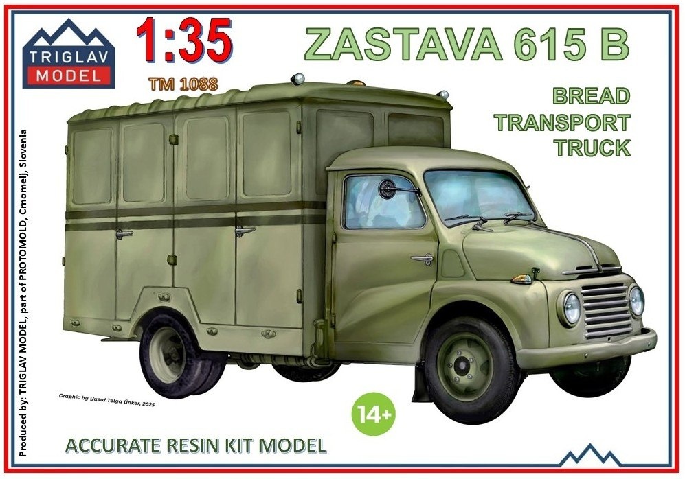 Словенская TRIGLAV MODEL показала детали своей выпускаемой на 3D-принтере модели югославской хлебовозки ZASTAVA 615B в масштабе 1/35: ZASTAVA 615B bread transport truck (каталожный номер ТМ1088)