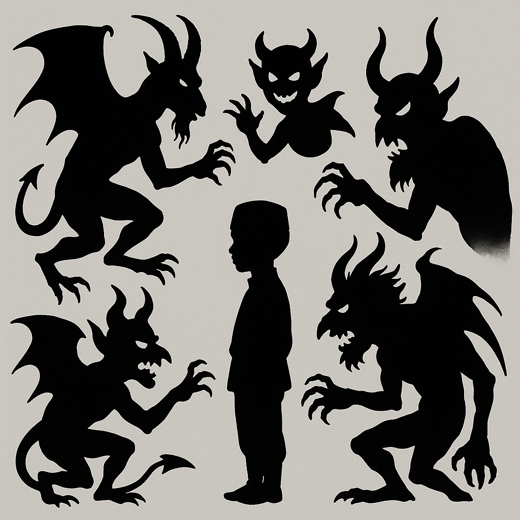 Оказалось, что они обсуждают - дьяволов, демонов, и вот все такое, а не шайтанов и иблисов. Из семей, что характерно, не идет ни то, ни другое. В религиозных семьях, наверное, идет, но не проникает в детский мир специально созданных страхов, чтобы боляться и кайфовать от того, что боишься и щекочешь нервы. И уж тем более - ни леших, ни шурале, ни, даже, инопланетян.