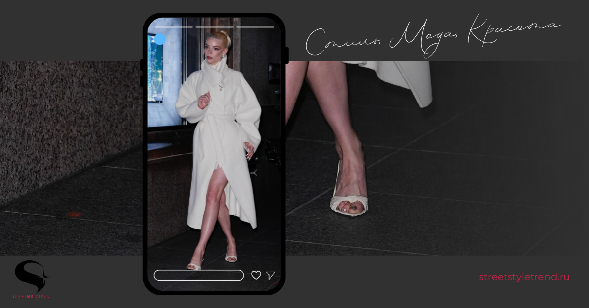 Прибыв на вечеринку, Аня Тейлор-Джой сняла пальто и обнажила много кожи. У Ани Тейлор-Джой очень смелый взгляд на зимний белый – убедитесь сами. Аня Тейлор-Джой уже в предвкушении Рождества: 12 ноября актрису сфотографировали в Нью-Йорке, в уютном самом зимнем белом наряде, а затем удивила всех чем-то гораздо более дерзким. Всё началось с типичного элегантного и утончённого образа, словно сошедшего со страниц книги стиля Ани Тейлор-Джой. Актриса "Дюны" была одета в белое шерстяное пальто свободного кроя с поясом и закруглёнными лацканами, воротник которого элегантно стоял. Остальной наряд остался скрыт, но она смело встречала холод голыми ногами и белыми мюлями. Украшения были от Tiffany & Co. – она выбрала брошь Jean Schlumberger "Птица на скале" и серьги в тон. Её ледяные светлые волосы были собраны в гладкий пучок, а губы накрашены яркой ярко-красной помадой. Для Тейлор-Джой главное — детали, и хотя она любит классику и вневременные штрихи, её удлиненный белый маникюр, украшенный