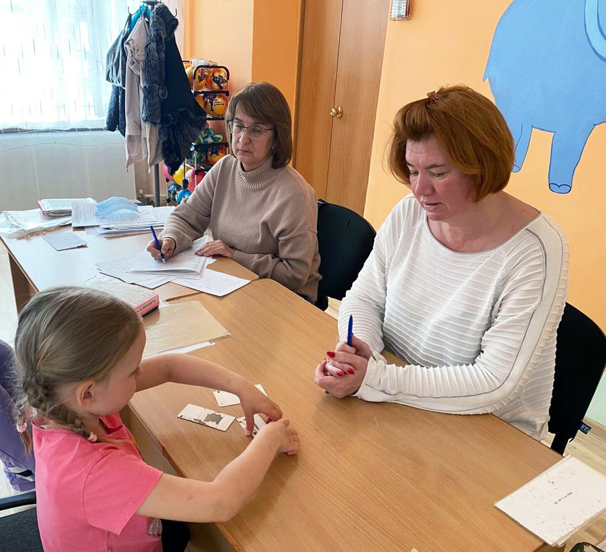 Специалисты разговаривают с ребенком, дают ему задания по возрасту и с учетом особенностей развития.